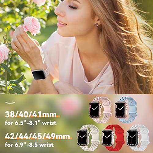 Arctime 5 Pack Soft Silicone Bands Compatible with Apple Watch Band 38mm 40mm 41mm 42mm 44mm 45mm 49mm, Sport Strap Breathable Wristbands for iWatch Ultra Series SE 8 7 6 5 4 3 2 1 Women Men