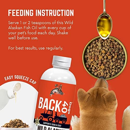 BACK 40 Dogs Wild Alaskan Fish Oil for Dogs, Skin and Coat Supplement for Dogs & Cats, Omega-3-Rich Salmon and Pollock Oil, EPA & DHA Dog Salmon Oil for Brain, Heart, and Joints 16 fl oz (473 ml)