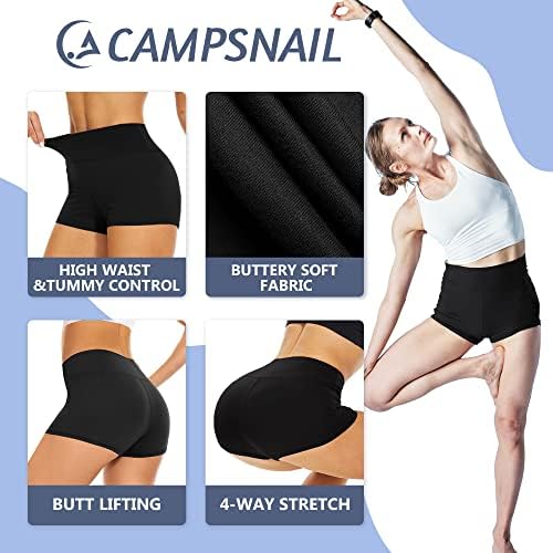 CAMPSNAIL Workout Biker Shorts Women – 3″/5″ High Waisted Tummy Control Spandex Booty Volleyball Gym Shorts for Yoga Dance