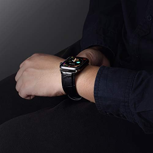 Compatible with Apple Watch Bands 42mm 44mm45mm 49mm Men Women, Rare Genuine Leather Crocodile Pattern Band Strap for iWatch Series 8,7,6,5,4,3,2,1, Ultra Sport SE