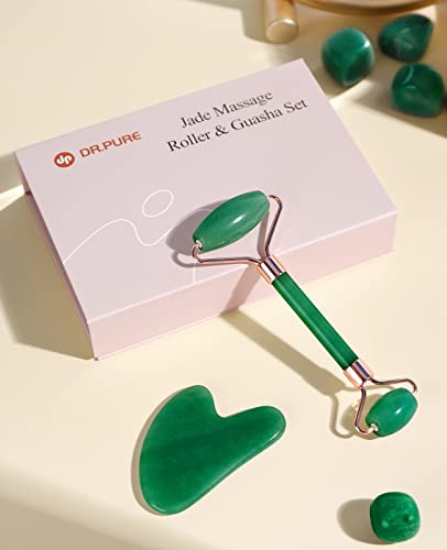 Dr. Pure Jade Roller and Gua Sha, Face Massage Facial Tools for Reduce Puffiness Anti Wrinkle Tighten Skin Body Relieve, Aventurine Green Face Roller Sculpting Tool, Women Gifts Skin Care Set