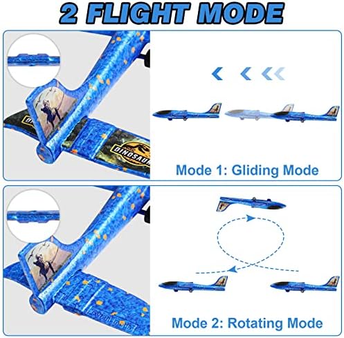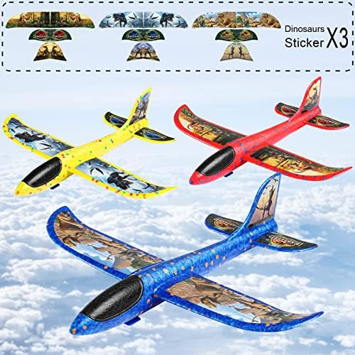 Elctbras 3 Pack Airplane Launcher Toy, Foam Glider Planes for Kids with 2 Flight Mode, Catapult Plane Toys with 3 DIY Stickers, Outdoor Sport Flying Toys for 4 5 6 7 8 9 10 Year Old