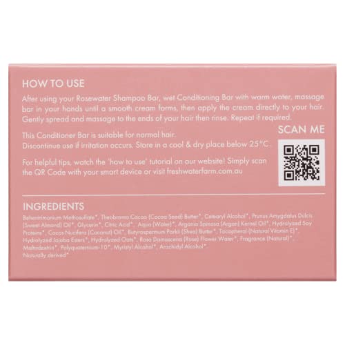 Fresh Water Farm Australia’s Shampoo Bars have been specially formulated with their signature essential oil blends to suit a variety of hair types. Each bar is pH balanced to ensure your hair and scalp remain hydrated and healthy. Enriching Rosewater will help to thoroughly wash and cleanse your hair, while Coconut Oil and Olive Oil will help to moisturise your scalp and hair. Fresh Water Farm Australia’s Conditioner Bars have been specially formulated with their signature essential oil blends to suit a variety of hair types. Each bar is pH balanced to ensure your hair and scalp remain hydrated and healthy. Jojoba Esters will help to smooth, moisturise and protect your hair and scalp while, Almond Oil and Cocoa Butter will help to leave your hair tangle-free and silky. Ideal for normal hair Each bar allows up to 100 washes dependent on your hair’s thickness and length. ↠ pH Balanced ↠ 100% Recyclable & Biodegradable ↠ Vegan Friendly ↠ Proudly Australian Made ↠ Cruelty-Free ↠ Not Tested On Animals