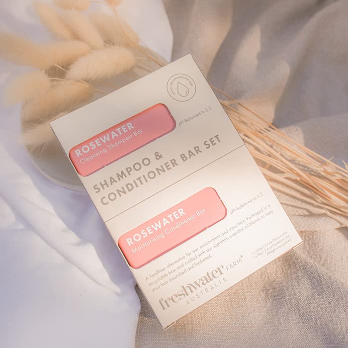Freshwater Farm Australia HAIRCARE | Cleansing Rosewater Shampoo + Conditioner Bar Set