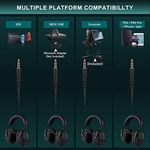 ⭐【RGB Light & Noise Canceling Microphone Gaming headphones】 A sensitive microphone for xbox wired headset has equipped , which uses noise canceling tech in PC headset. Noise cancelling headphones with microphone filter most ambient noise around you and provide an immerse gaming experience. Kids headphones for school was also employed a fascinating RGB design on each ear cup, providing an exciting atmosphere for you. PC headphones are perfect for gaming, working, chatting and skype using