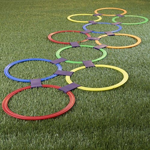 Hey! Play! Hopscotch Ring Game-10 Multi-Colored Plastic Rings and 15 Connectors for Indoor or Outdoor Use-Fun Creative Play Set for Girls and Boys