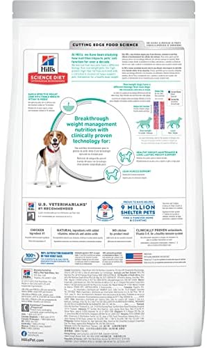 Putting your grown dog on a calorie restricted diet can be difficult for you and your canine companion. That’s why Hill’s Science Diet Perfect Weight Small Bites Dog Food provides delicious, breakthrough weight management nutrition that your full grown dog can enjoy. With protein for lean muscle maintenance, and clinically proven results in just 10 weeks, this weight control dog food made with natural ingredients is the perfect addition to your adult dog’s bowl. This healthy weight dog food is formulated with decades of cutting-edge research to be a great-tasting meal your grown dog can truly enjoy. There’s more to love with the new look of Science Diet. Some of our products also have new names, new kibble shapes & new formulas.