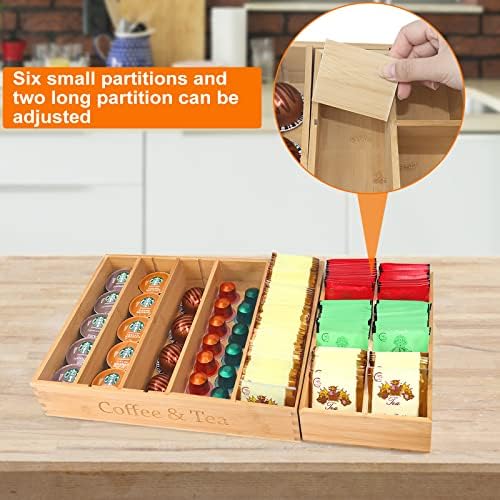 KEVTVEK K Cup Holder Organizer for Drawer or Countertop, 35-70 Coffee pod Holder Organizer, Adjustable K Cup Storage and Tea Bag Organizer for Coffee Station Home Office Bedroom and Kitchen(Bamboo)
