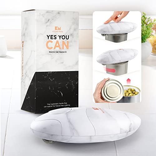 Kitchen Mama Auto 2.0 Electric Can Opener: Upgraded Blade Opens Any Sized Can – Automatic, Hands Free, Smooth Edge, Food-Safe, Handy with Lid Lift, Battery Operated, YES YOU CAN (Marble White)