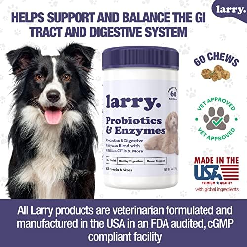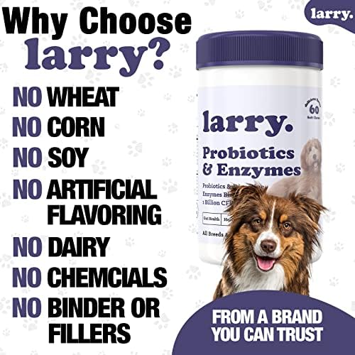 Larry Probiotics and Digestive Enzymes for Dogs, 60 Soft Probiotic Chews for Dogs with 1 Billion CFUs for Gut Health, Digestion, Stomach Relief, Immune Support – Puppy and Canine Probiotic Dog Treats