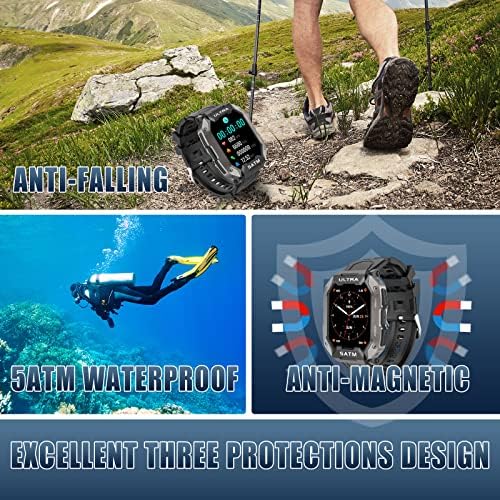 【50M WATERPROOF & MESSAGE REMINDER】Outdoor tactical watches for men with a fully incredibly strong and corrosion-resistant enclosed slim shell designed can be immersed in 50M deep water, and enjoy the fun of swimming, snorkeling and surfing. Even outdoors, there is no need to worry about rain damage to the watch. Comes with message reminders(SMS, Facebook, WhatsApp, Twitter etc), raise your wrist to light up the screen, large 1.7″ HD screen helps you focus more on enjoying exploring the world.
