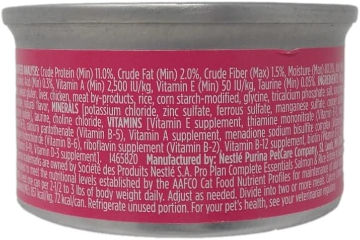 Purina Pro Plan Complete Essentials Cat Food 4 Flavor 8 Can Sampler (2) Each: Salmon Rice, Turkey Rice, Chicken Cheese, Beef Chicken (3 Ounces) Plus Catnip Toy and Fun Facts Booklet Bundle