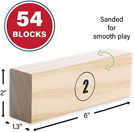 Specifications 54 Pine Wood Blocks Block Size: 6 x 2 x 1.3 inches Oxford Carrying Case Scoreboard