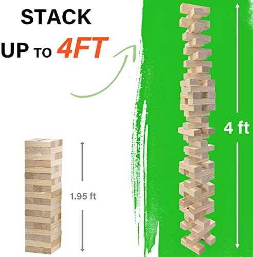 SPORT BEATS Large Tower Game Life Size Lawn Yard Outdoor Games for Adults and Family Wooden Stacking Games- Includes Rules and Carry Bag-54 Large Blocks