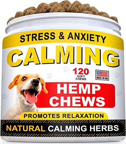 STRELLALAB Hemp Calming Chews for Dogs Anxiety Relief – Made in USA w/Hemp Oil – Dog Training & Behavior Aid – Natural Stress Relief During Firework, Storm, Separation, Barking – 120 Treats