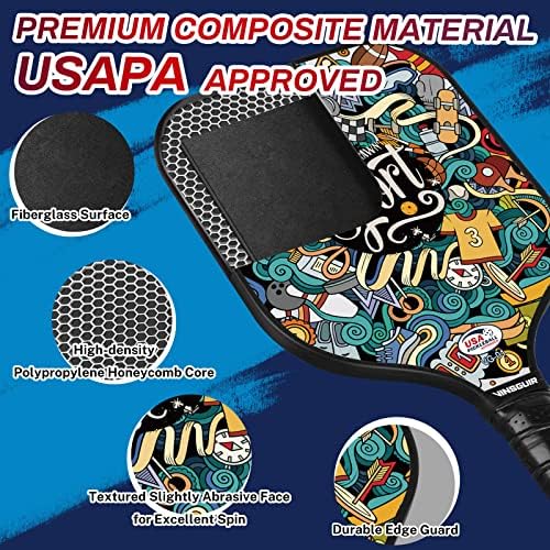 【Honeycomb Core for More Pop & Less Injury】 The Vinsguir pickleball paddles (set of 2) boast their long-lasting durability and powerful responsiveness with the solid construction of durable fiberglass paired with polymer honeycomb cores. The higher density thanks to smaller honeycomb cells translates to a feel-good nice “pop”, and reduced vibration for less common injuries such as tennis elbow.