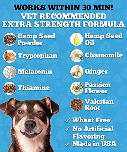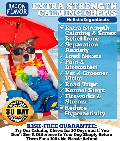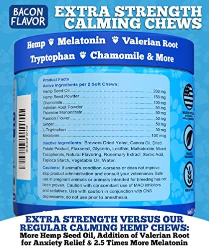 ✅ Got Dog Separation Anxiety – Your dog is sure to love our bacon flavored, veterinarian recommended, made in the USA, calming dog treats for dog anxiety relief. With Hemp Oil, Valerian Root, Tryptophan, and Melatonin for Dogs our all natural ingredients work together to safely and effectively provide your dog with hours of calming and anxiety relief and peace of mind for yourself.