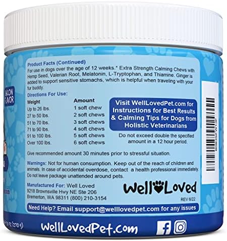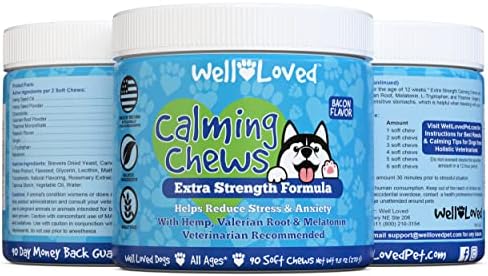 Well Loved Calming Chews for Dogs – Dog Anxiety Relief, Made in USA, Vet Recommended, Dog Calming Chews – Anxiety Relief Treats, Melatonin for Dogs, Hemp Dog Treats for Calming, Extra Strength