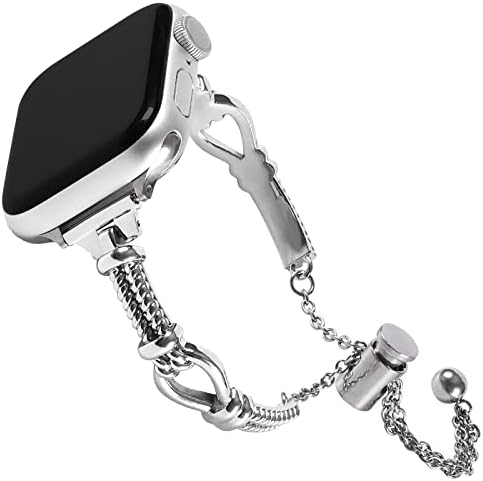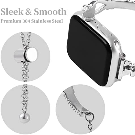 [Quality Material]: Slim Dressy Design Jewelry Bracelet made of premium stainless steel 316 metal with well polished and slim/thin stylish design which makes this iwatch band more lightweight, comfortable, sturdy and durable also skin-friendly to your wrist and hand hair, bring you an elegant and comfortable wearing experience.